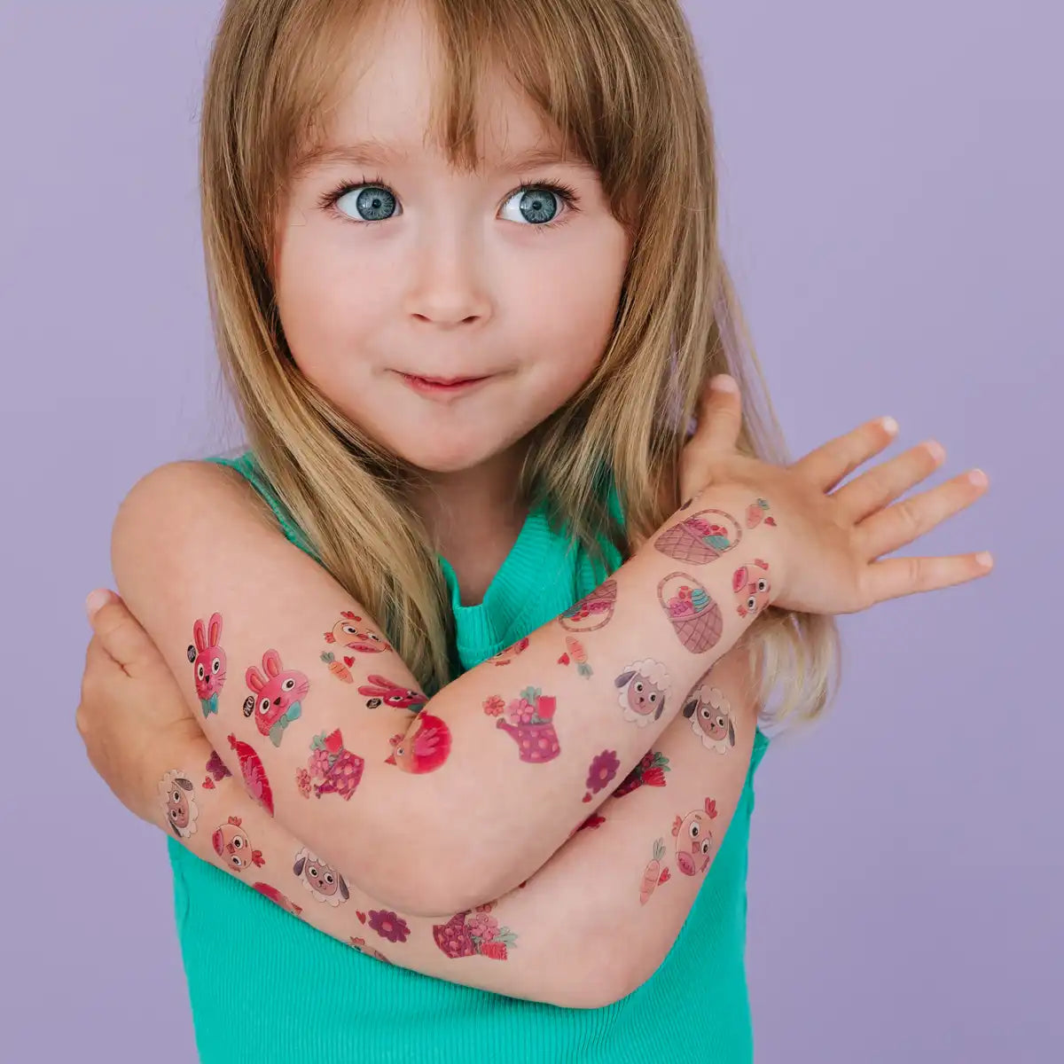 Les amis du printemps sont en préparatifs pour la fête de Pâques. Le poussin, le lapin et le mouton sont festifs et prêts pour l’arrivée du printemps et du beau temps. Vous voulez des tatouages un peu plus gourmands pour compléter le tout, procurez-vous également les tatouages Les lapins en chocolat.