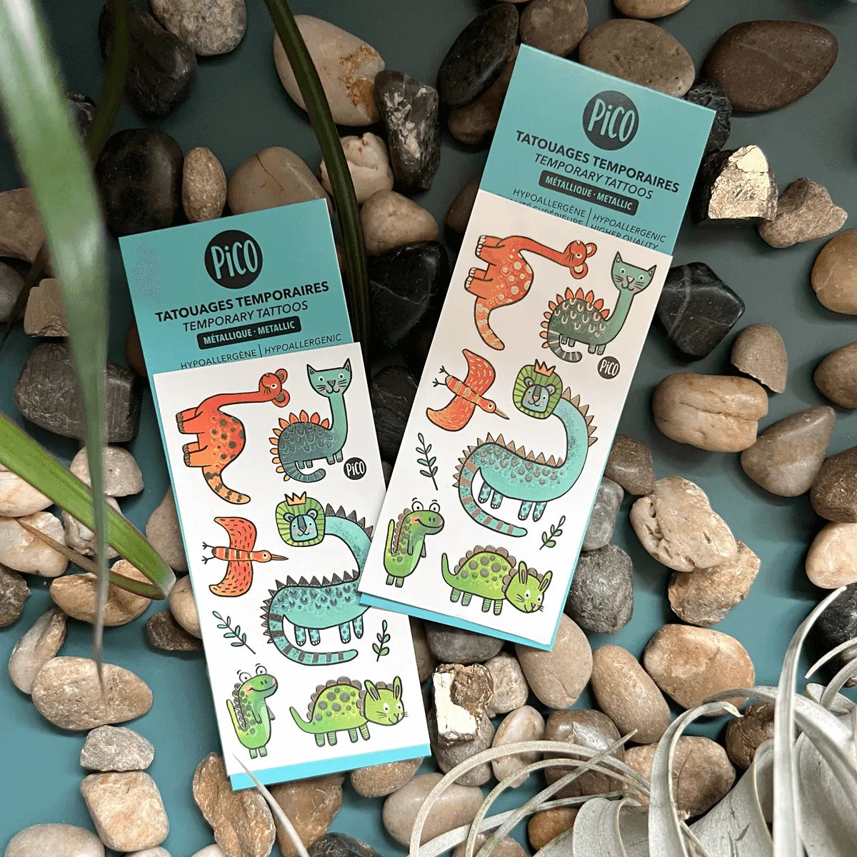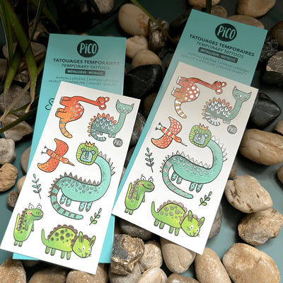 Le design des tatouages temporaires est fait au Québec. L'impression des tatouages est réalisée aux États-Unis. L'impression est d'une qualité supérieure, hypoallergène, non-toxique et certifiée FDA (USA). Les tatouages conviennent aux enfants âgés de 3 ans et plus.