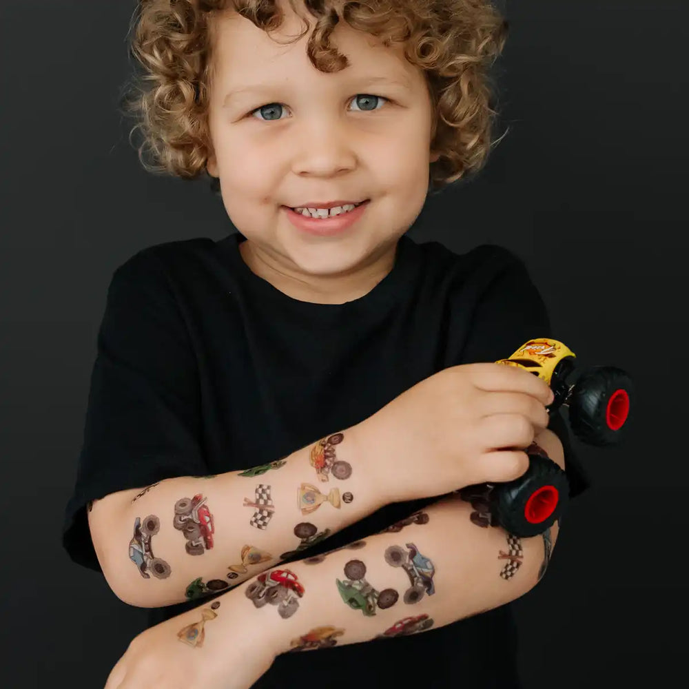Tatouages temporaires de camions monstres pour les fans de sport extrême par PiCO Tatouages temporaires. Design réalisé au Québec / Fantastic monster truck temporary tattoos by PiCO Temporary Tattoos. Design made in Canada.